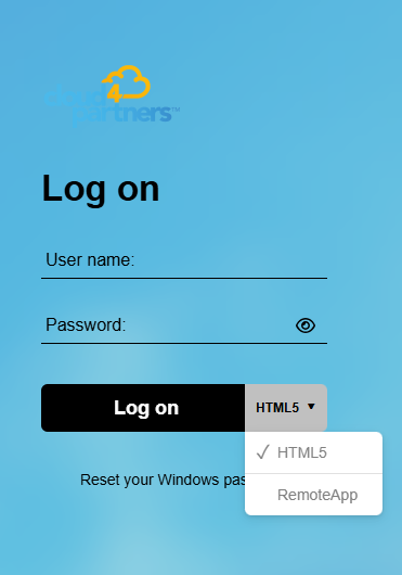 You will have the option to choose either HTML5 or RemoteApp. In this instance, select HTML5. This will open your connection as a new tab in your browser.